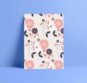Elegant Allium flowers in a pink and black repeat pattern greetings card. Designed in a Scandinavian style graphic. Part of a new collection launched in March 2021. I have many repeat pattern designs, and single flowers in the collection.