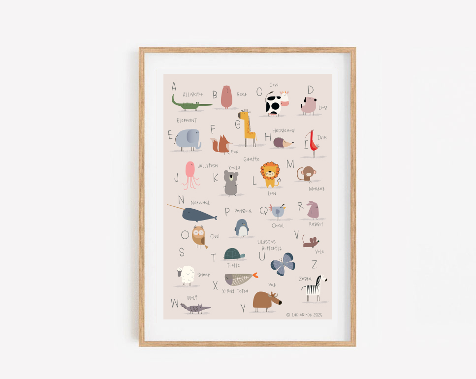 We absolutely love the Animal Alphabet print, it was really good Quality and goes great in a frame.
