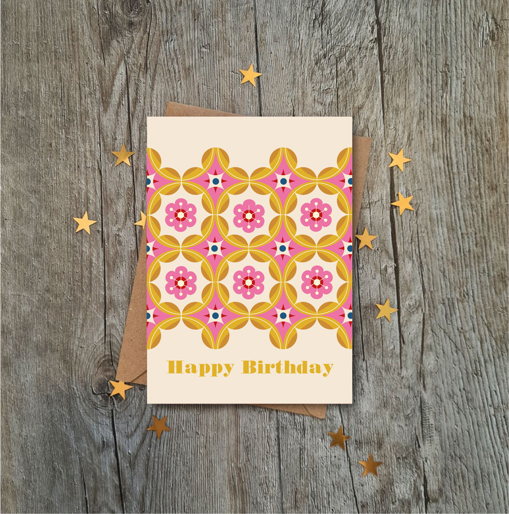 vintage style cherry blossom flower pattern birthday card