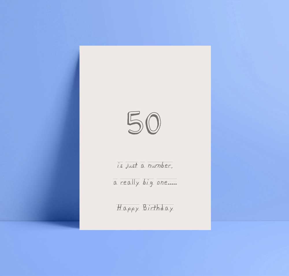 Mark the big 5-0 with this funny 50th birthday card featuring the bold and playful message “50 is just a number, a really big one…..” — a brilliantly cheeky twist that’s sure to get a laugh. Printed in C6 size on premium 300gsm Calisto Diamond White card, this high-quality greetings card has a smooth, luxury feel and a crisp professional finish, making it the perfect choice for celebrating a milestone birthday with humour. Ideal for friends, family or colleagues who appreciate light-hearted teasing and standout designs on their special day.