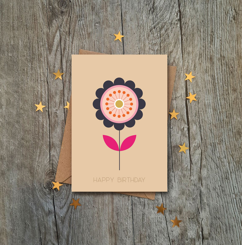 Hollyhock flower Happy Birthday Card. Beautiful flower cards from my brand new collection for 2022. Designed and printed in London UK at Studio Ladiebirdy.