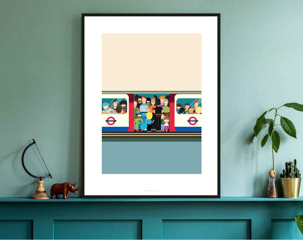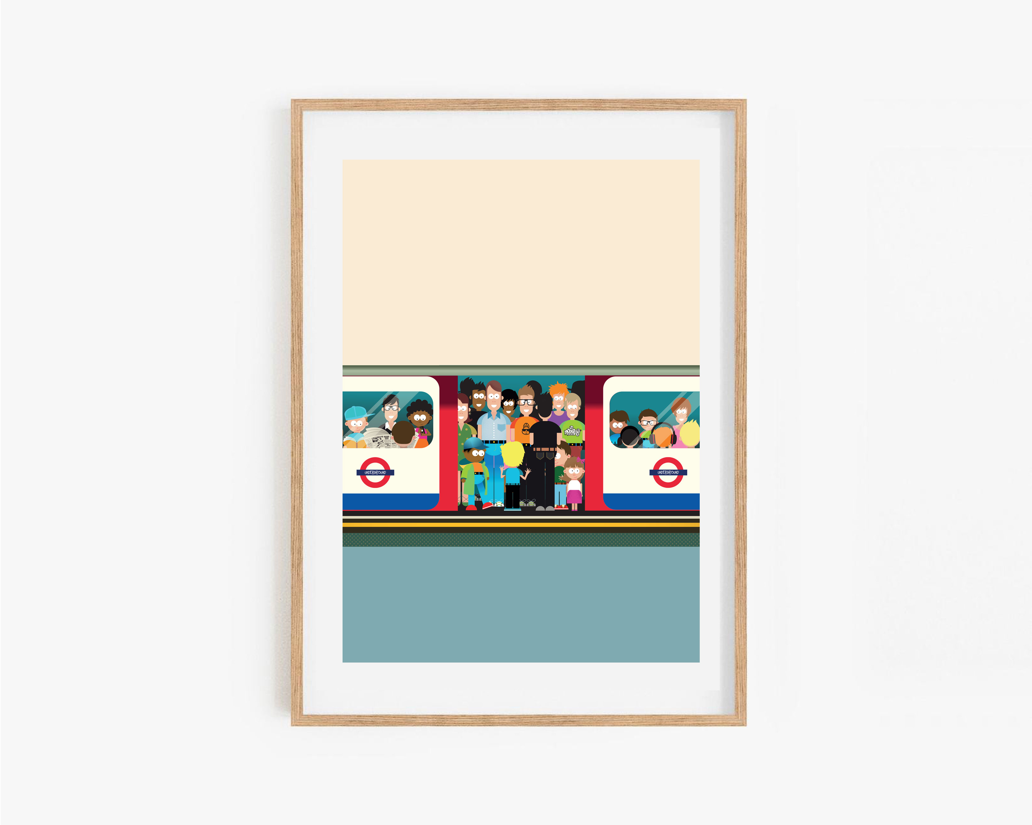 Happy, fun and colourful art for children and adults alike! A playful design featuring a very busy London Underground Tube carriage. It has been lovingly illustrated in my West London Studio, and is part of a my London collection. It is a perfect gift for a your home in any room.