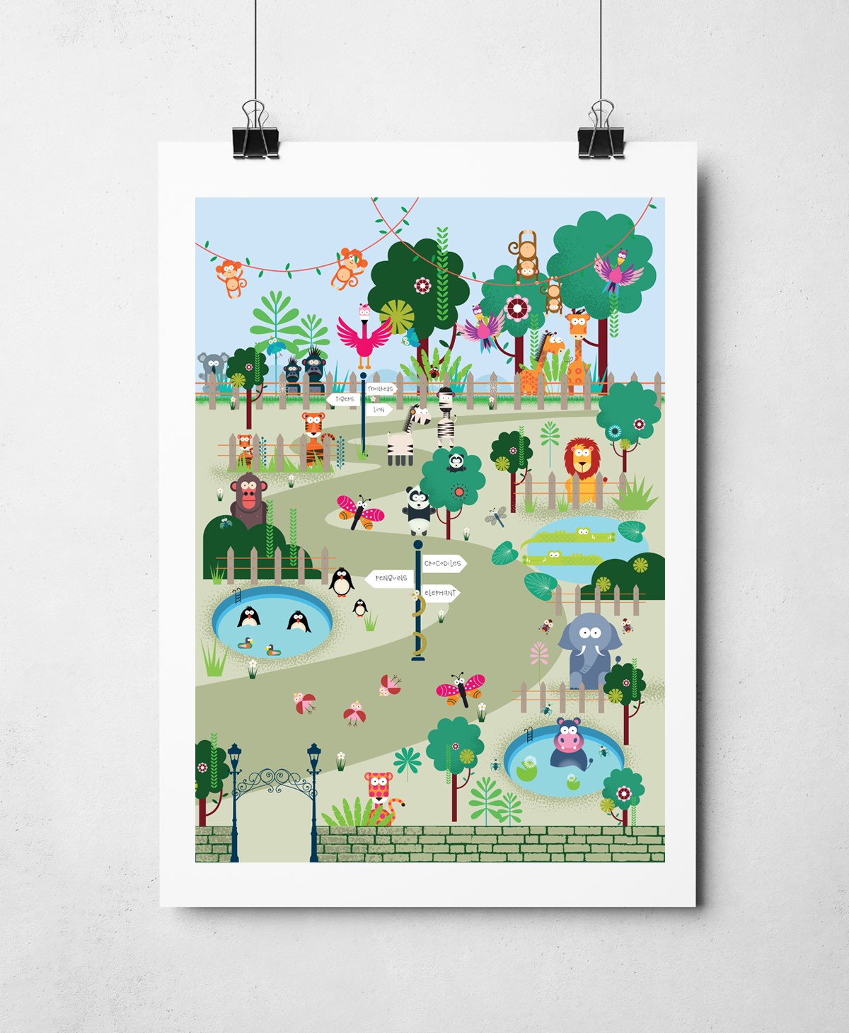 Happy, fun and colourful art for children and adults alike! A playful design featuring London Zoo, including all your animal favourites. It has been lovingly illustrated in my West London Studio, and is part of a my London collection. It is a perfect gift for a new baby or your little one. Looks fantastic in a child’s Nursery.