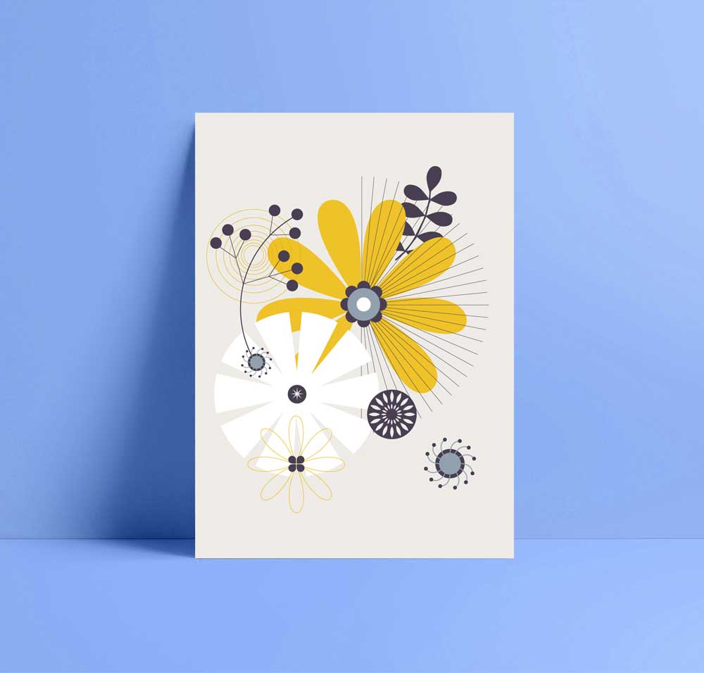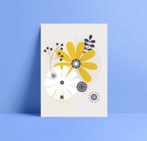 Magnolia flower pattern greetings card. Designed in a Scandinavian style graphic. Part of a new collection launched in March 2021.