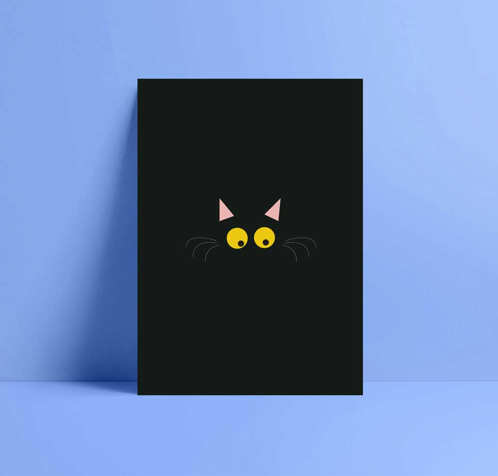 Add a touch of modern elegance with our minimalist cat greeting card. Featuring only the cat’s glowing yellow eyes and delicate white whiskers, the rest of the design relies on clever negative space to create a sleek, contemporary look that is both mysterious and playful.