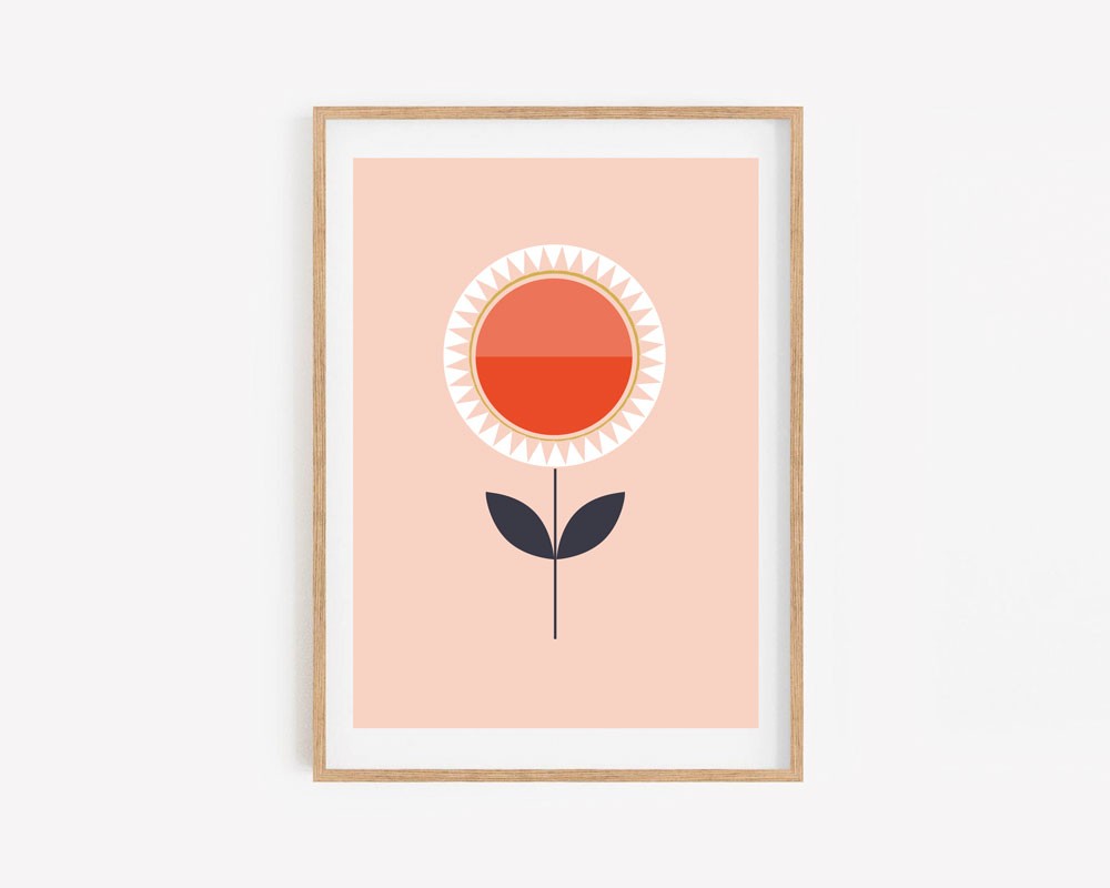 Gorgeous Orange Carnation simplistic geometric flower print in A3 size. Perfect to add a splash of colour to your interior styling in any room, and is a perfect gift for any flower lover. This print is from a collection of 10 designs launched in Spring 2022.