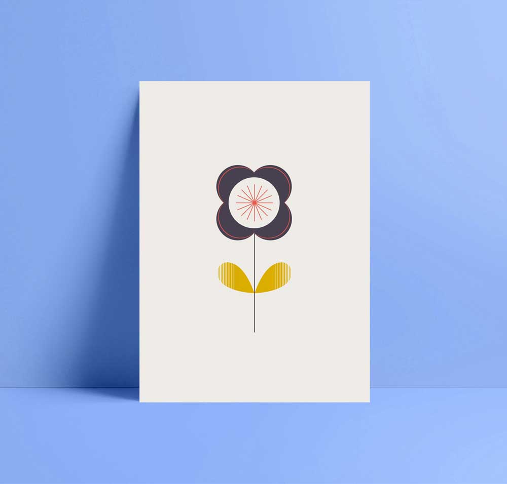 Beautiful, simple black and red Poppy flower greetings card. Designed in a Scandinavian style graphic. Part of a new collection launched in March 2021. I have many repeat pattern designs, and single flowers in the collection.