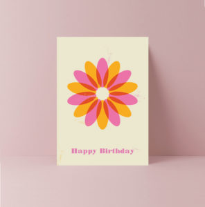 Looking for a card for a special Birthday, then this retro yellow and pink daisy flower card is perfect.