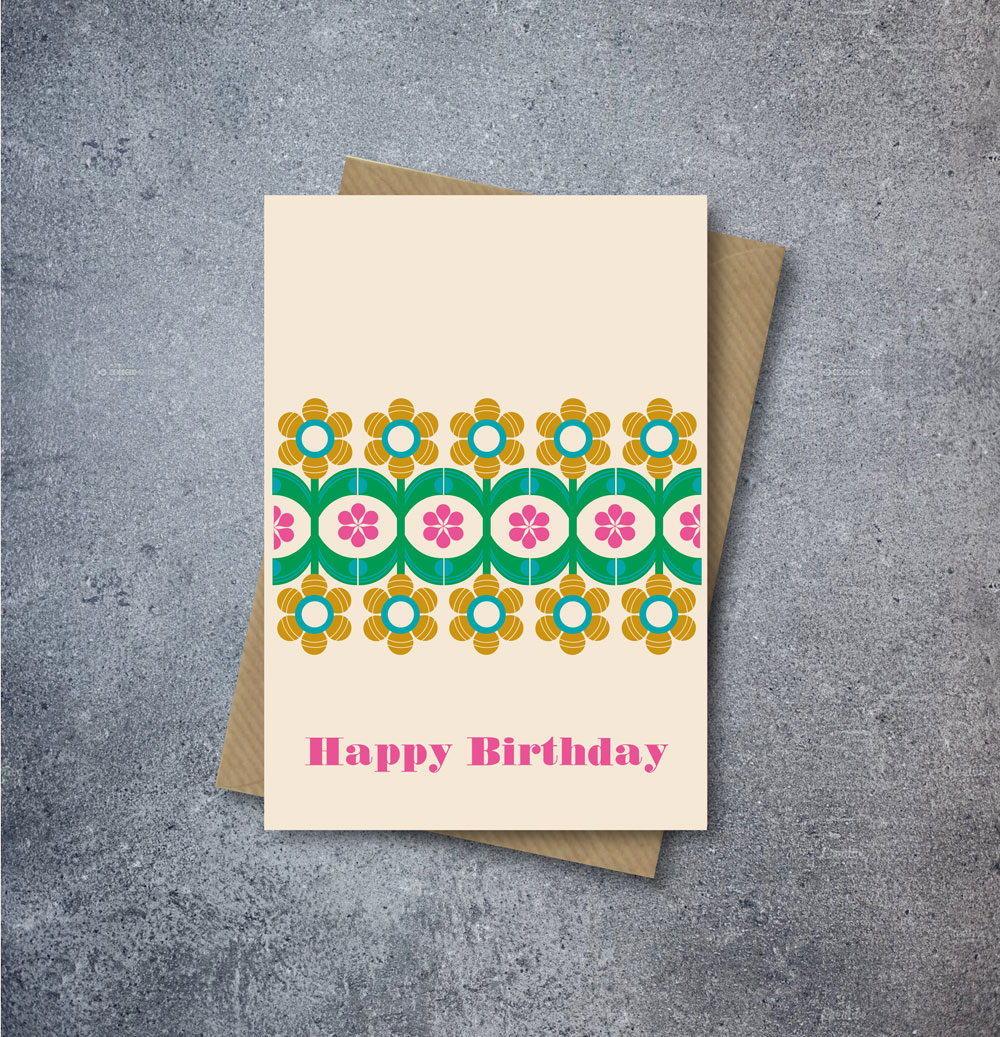 Vintage style ‘Marigold Flower Pattern’ Birthday Card. Brand new design for 2023.