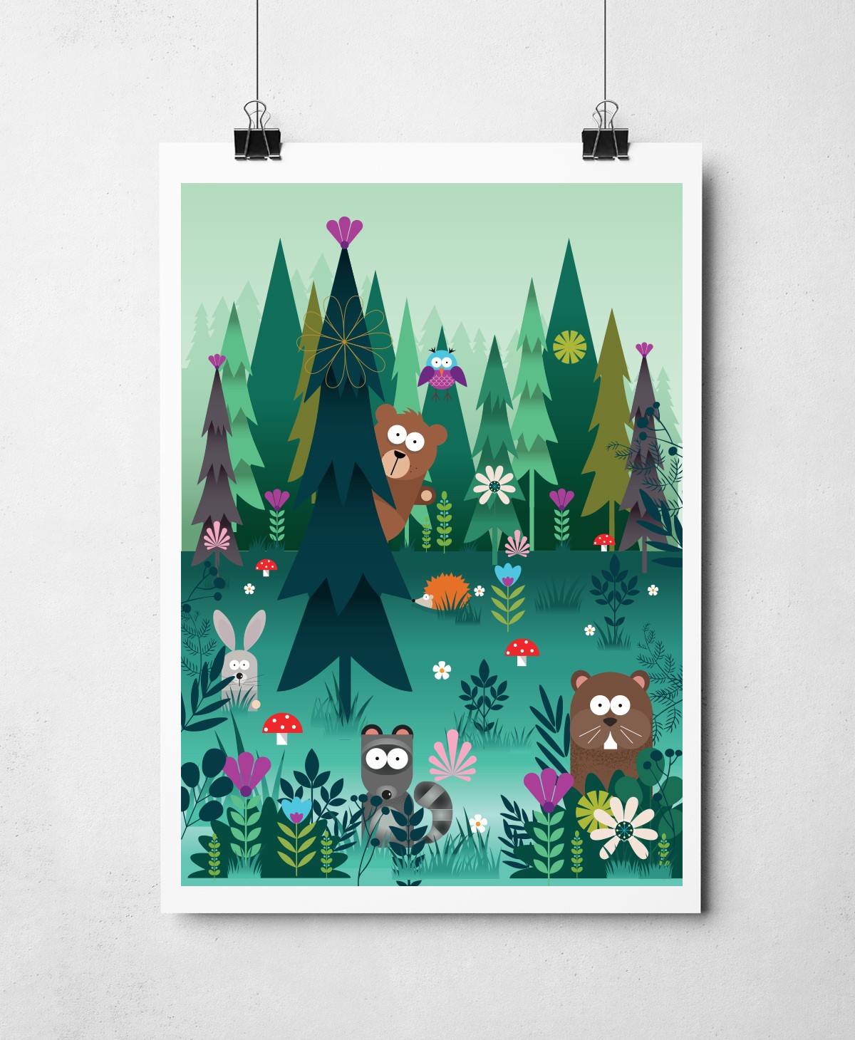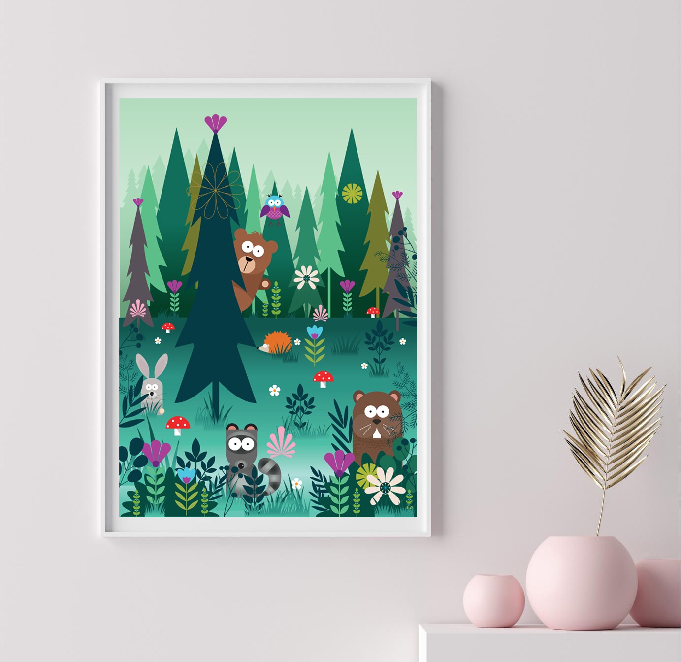 Happy, fun and colourful art for children and adults alike! A playful design featuring a Bear in the Woodland. It has been lovingly illustrated in my West London Studio, and is part of a my Woodland Prints collection. It is a perfect finishing touch for any baby’s nursery, Childs bedroom or playroom. Great gift for Christmas, christenings or birthdays. It is a great way to introduce a child into the animal world.