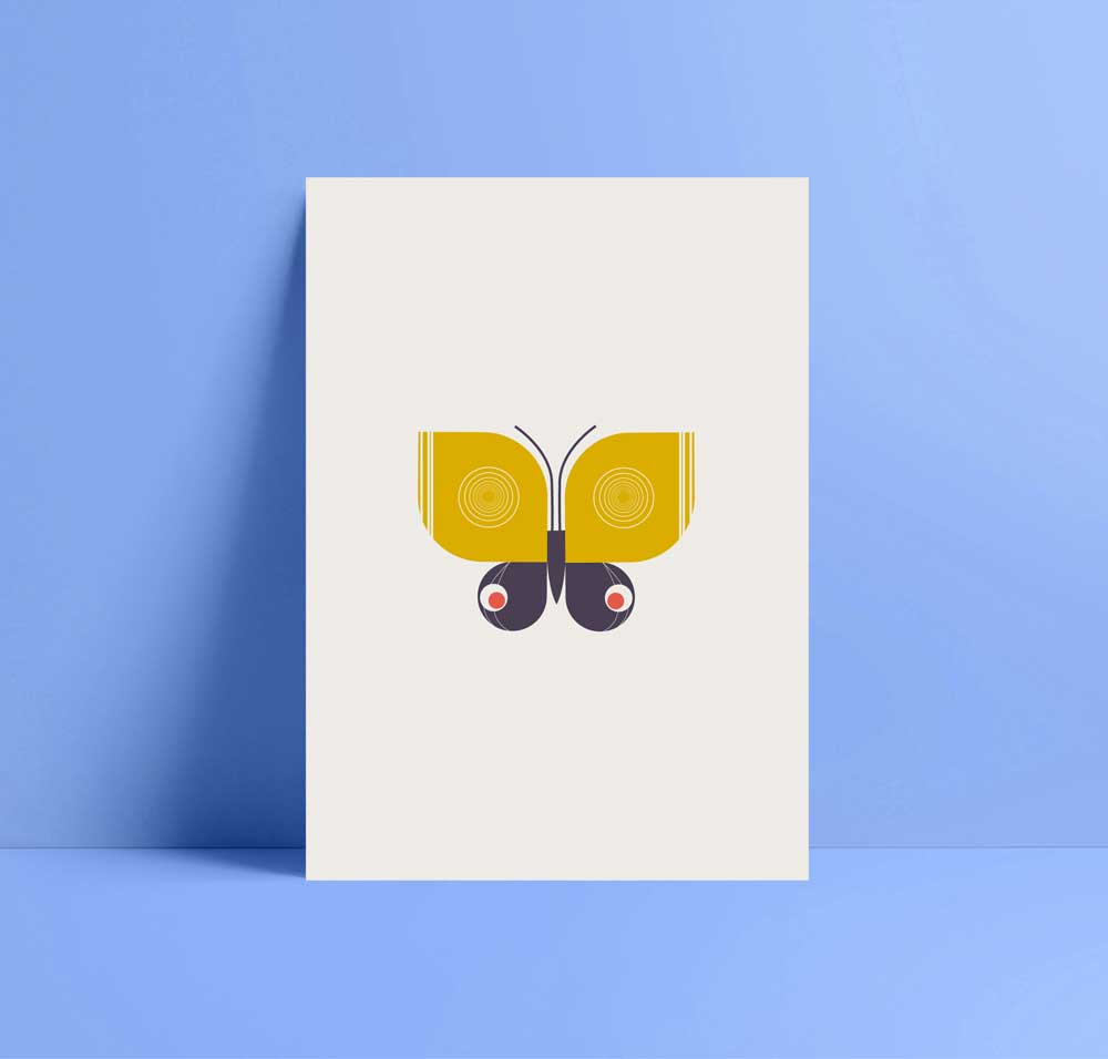 Yellow Pieridae Butterfly Greetings  Card, in Scandanavian graphics style. This card is part of a brand new flowers and butterfly card collection I have been recently been working on.